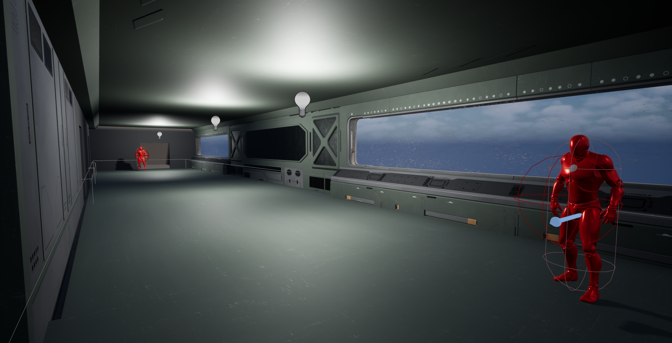 Lost signal is a level where I tried to implement feeling through lighting and incorporate various scripted elements, such as UI puzzles, cinematics, enemy tracking (if you killed all of them), and more. I used a template that was given to me in class and built off of it. Base systems like movement, interactables, and enemy logic,I did not make; however, all the fancy parts were of my creation